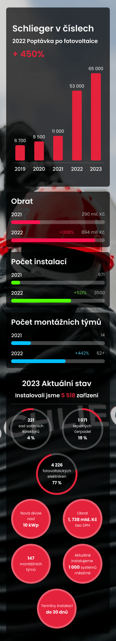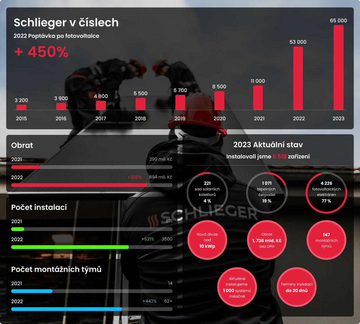 U nás ve Schliegeru je každý den výzva. Přidej se k jedničce mezi dodavateli a výrobci fotovoltaiky a tvůj kalendář bude nabitý schůzkami s novými i stávajícími zákazníky, kteří se k nám rádi vracejí.